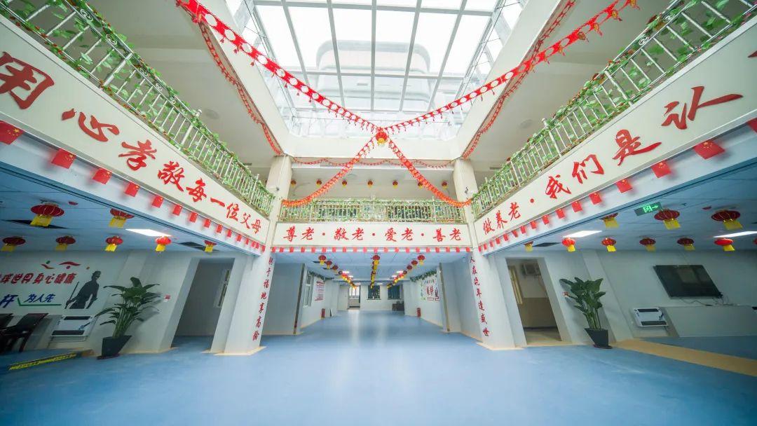 中心共设有床位150张,高级套间、单人间、双人间、三人间、多人间一应俱全,中央空调、24小时热水、独立卫生间(沐浴室)、无障碍设施、有线电视、网络系统、呼叫系统、安防系统等设施配备完善;院内绿树成荫、鸟语花香、环境宜人,古建筑的凉亭、壮观的喷泉山景、百花争艳的花园、鹅卵石的便道、各种健身器材、太极小广场、木条休息长椅等供老人休闲、健身。
